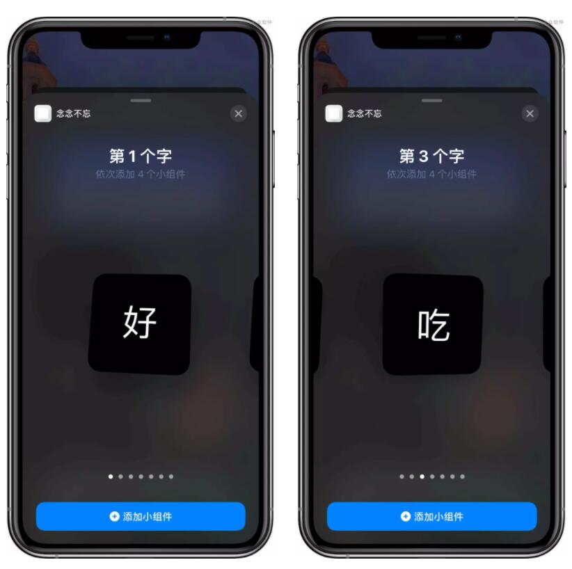 念念不忘 提供了 7 個小組件,前 4 個就是 4 個字依次排序,第 5 到第 7 個從小、中、大顯示一句話。