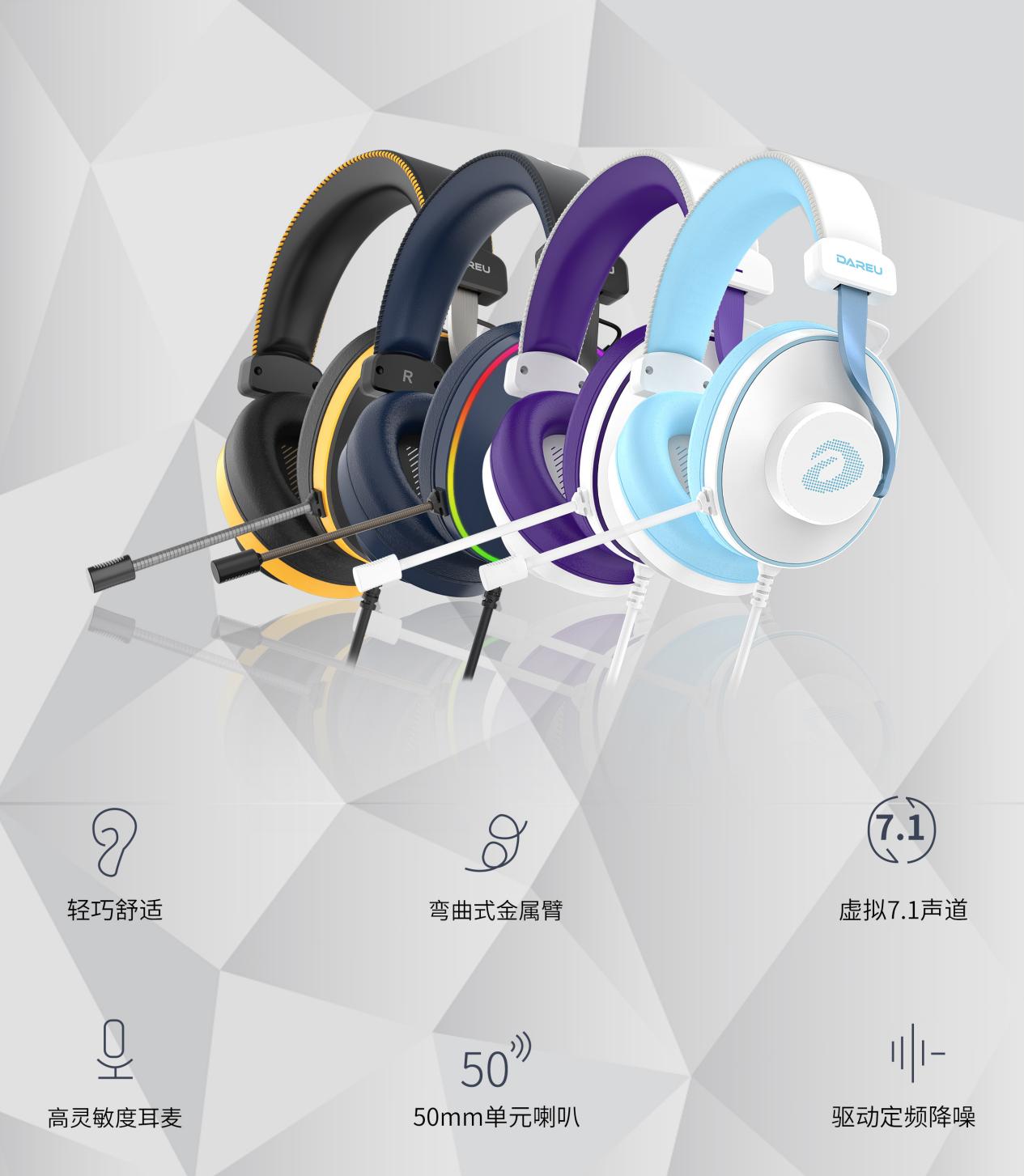 260g輕量化設計,絕地求生吃雞神器。輕型的機身設計與達爾優獨創的扭曲金屬臂結構,適配不同頭型的用戶,持久佩戴不疲憊;搭配身臨其境的虛擬7.1聲道,自帶麥克風降噪功能,讓你洞悉先機,決勝快人一步。