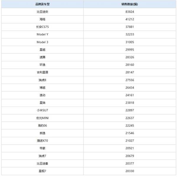 吉利星越、大眾速騰、日產(chǎn)軒逸、吉利星愿以及奇瑞瑞虎8等車型也成功躋身前十名,展現(xiàn)了各自品牌在市場(chǎng)中的不俗表現(xiàn)。