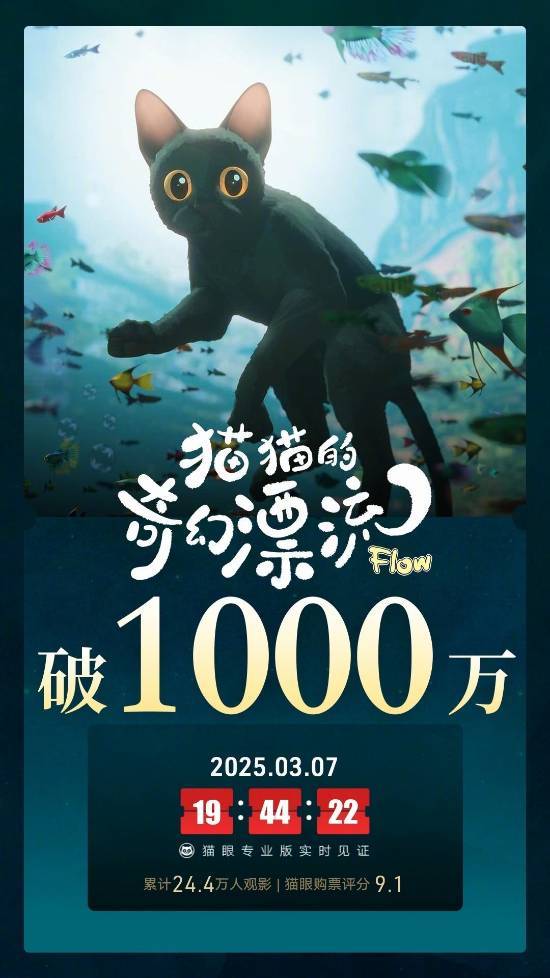 動(dòng)畫電影《貓貓的奇幻漂流》自登陸大銀幕以來,僅用了短短八天時(shí)間,便成功跨越了千萬元票房大關(guān),這一成績無疑為近期的影壇注入了一股強(qiáng)勁的動(dòng)力。