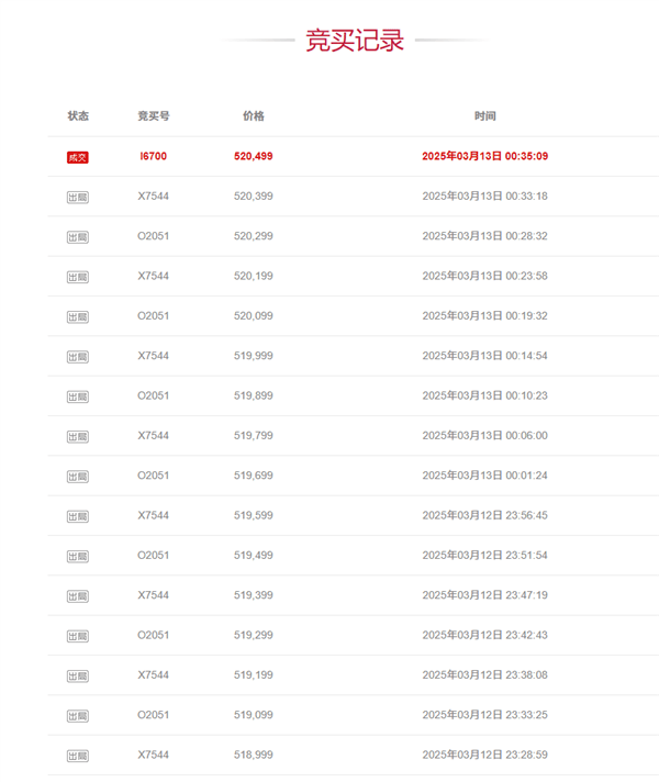 隨著競拍的熱烈進行,這場原本看似平淡無奇的拍賣迅速升溫,吸引了57名競拍者的積極參與。價格從最初的99元起拍,猶如脫韁野馬般一路飆升,直至突破40萬元大關。此時,戰場已逐漸縮小,僅剩兩位競拍者仍在激烈角逐,爭奪這輛心儀的手機。
