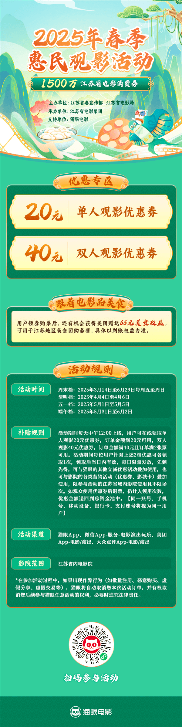 江蘇春季惠民觀影大放送!1500萬消費券,人人可享60元優惠