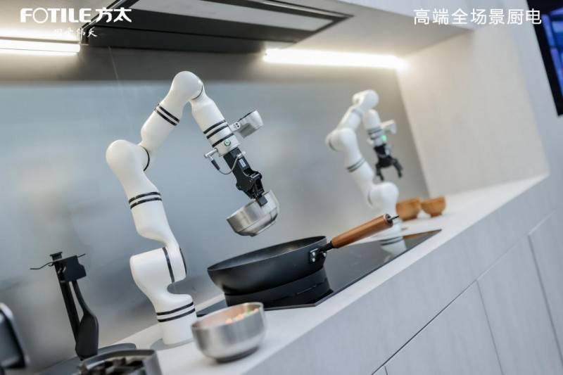 方太通過“多維傳感AI慧眼-AI Genie智能大腦-3D全感知機(jī)械臂”的硬件組合,構(gòu)建了廚房生產(chǎn)力的新三角。在烹飪導(dǎo)航場景中,AI慧眼與AI Genie協(xié)同工作,構(gòu)建數(shù)字化的“導(dǎo)師系統(tǒng)”,幫助用戶提升烹飪技能。而在自動烹飪場景中,3D全感知機(jī)械臂的加入,則完成了智能閉環(huán)的“最后一公里”。這款機(jī)械臂能夠擬人化地完成烹飪中的復(fù)雜操作,從切配到烹飪,再到收納和清潔,全程無需人工干預(yù),真正實現(xiàn)了“解放雙手”。