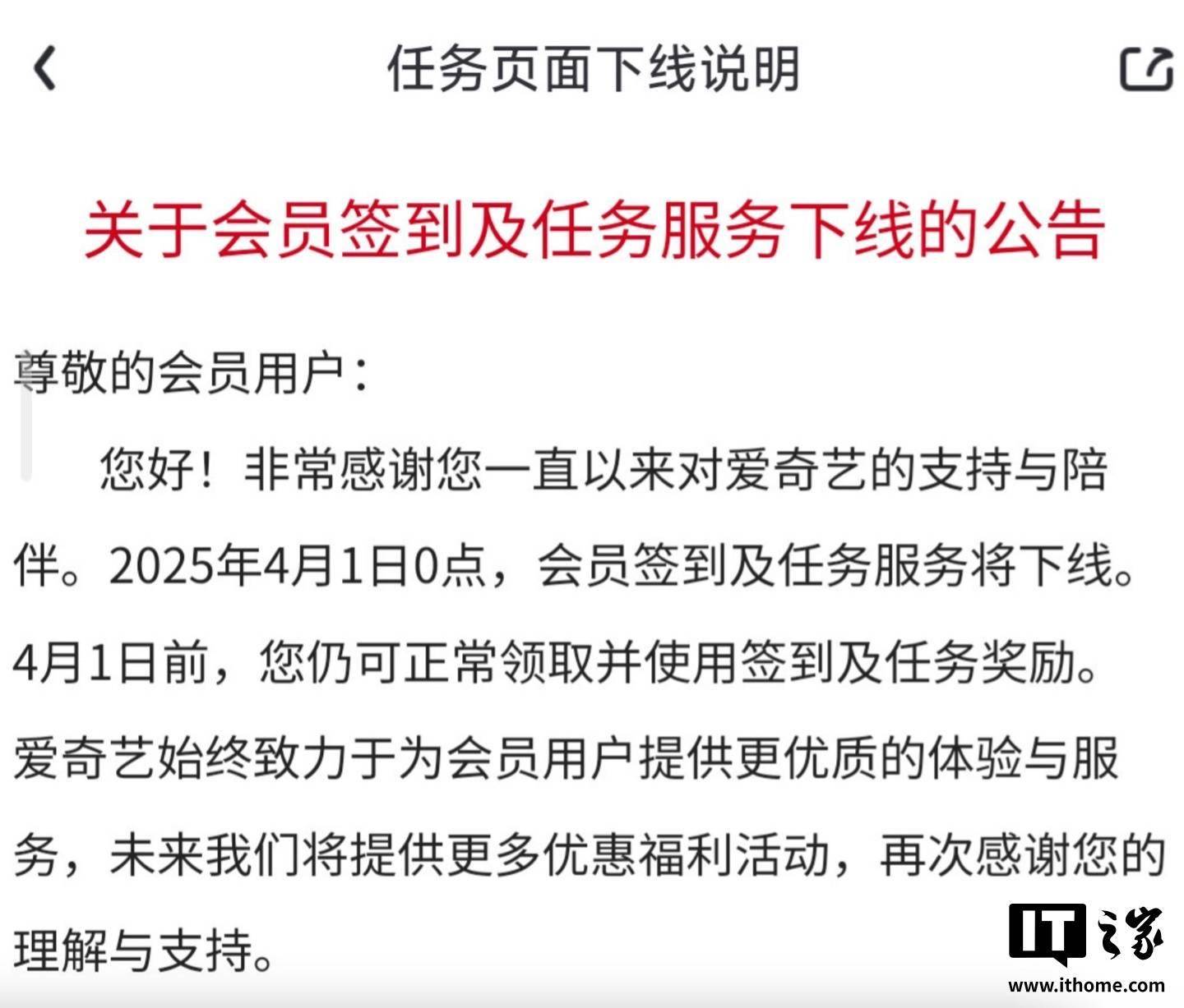 愛奇藝VIP會(huì)員簽到兌獎(jiǎng)福利4月起取消