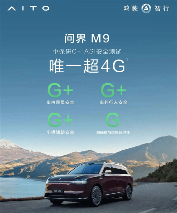問界M9創紀錄!中保研C-IASI測試斬獲超4G安全認證最高等級