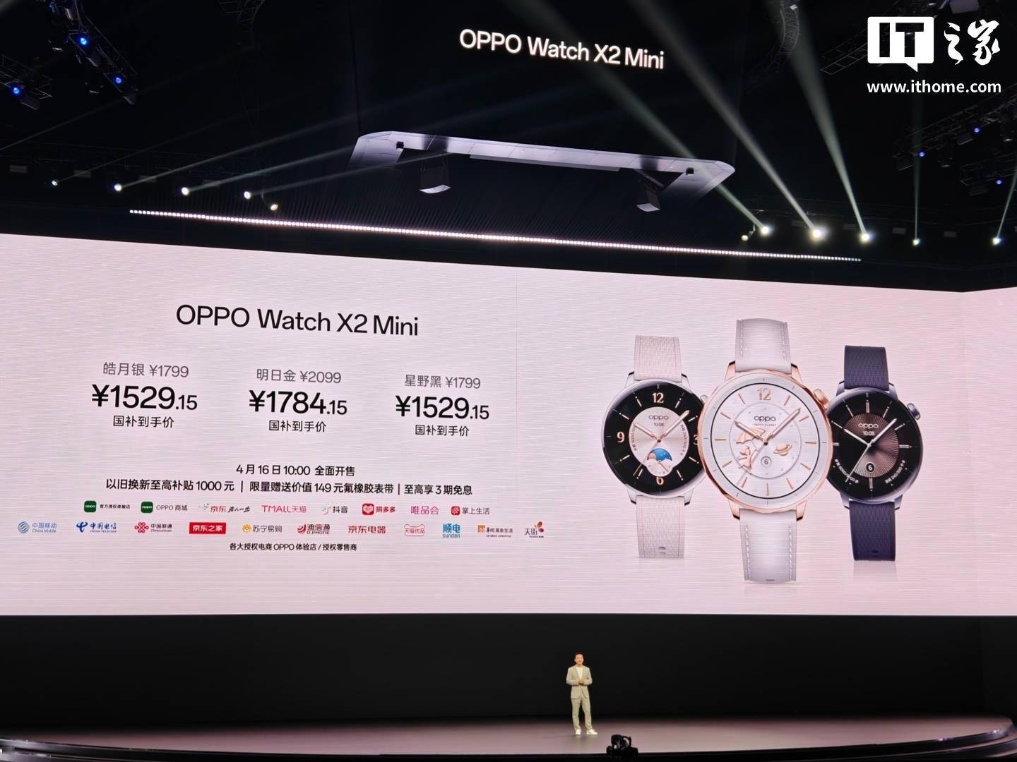 OPPO Watch X2 Mini智能手表新上市:明日金等三色可選,售價1799元起