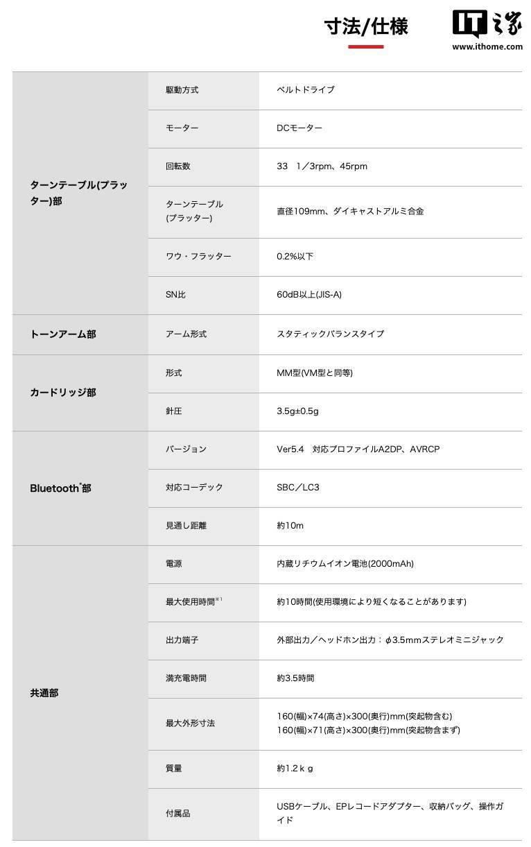 Aurex AX-RP10的詳細參數顯示,其內置2000mAh電池,確保了長時間的續航能力。預計該產品將于四月上市,盡管東芝官方尚未公布具體售價,但已經引起了音樂愛好者和黑膠唱片收藏家的廣泛關注。這款播放器以其獨特的設計和實用的功能,有望成為市場上的一款熱門產品。