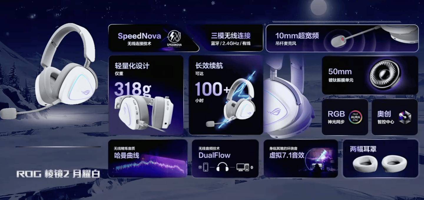 華碩ROG棱鏡2月耀白耳機發布,三模連接僅售1399元!