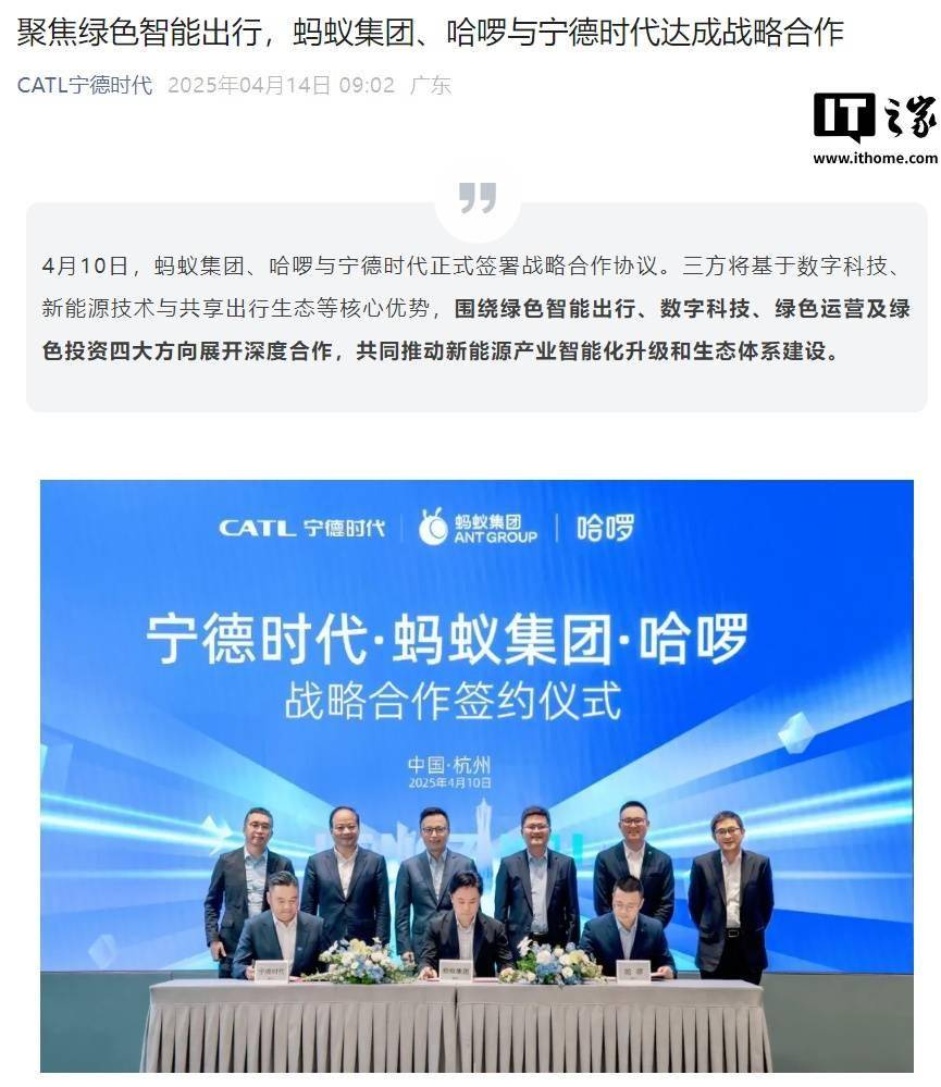 寧德時代、螞蟻集團與哈啰攜手,共探綠色智能出行新生態,擬成立合資公司