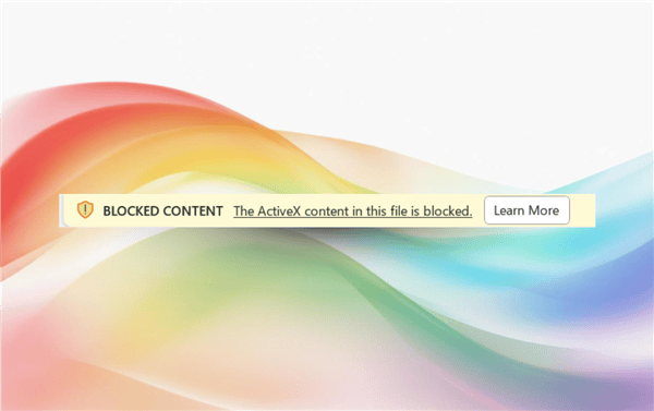 目前,這一關于ActiveX行為變更的更新已率先在Microsoft 365 Insiders的Beta頻道中推出,并逐步向Current Channel版本2504(構建號18730.20030及以上)的用戶推廣。當用戶嘗試打開包含ActiveX元素的Office文件時,系統將在通知欄顯示一條新提示:“已阻止內容:此文件中的ActiveX內容已被禁用。”與以往不同,此次提示中不再包含啟用ActiveX的選項,僅提供一個“了解更多”的鏈接,引導用戶查閱相關支持文檔。