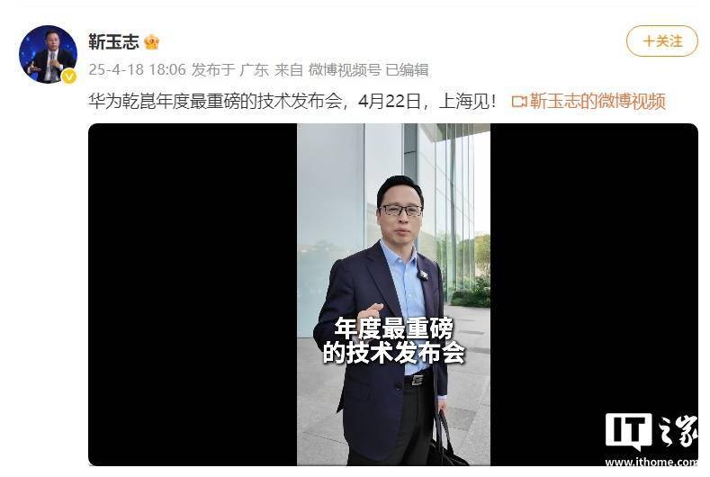 靳玉志在視頻中激動地表示:“這是華為乾崑年度最為關鍵的技術發布會,我們誠摯邀請各位4月22日相聚上海!”他的話語中透露出對本次發布會的極高期待。