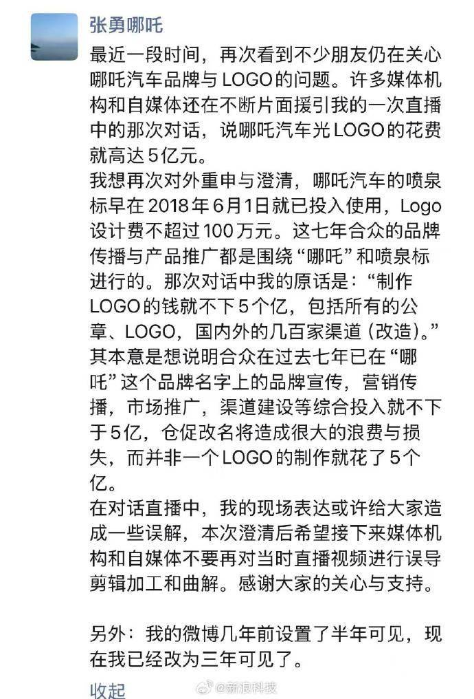 哪吒汽車前CEO張勇澄清:LOGO設計費未達5億,微博設置已調整