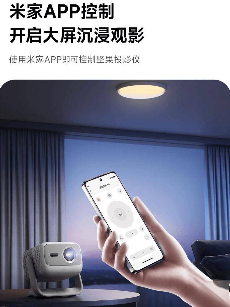 通過米家App,用戶可以輕松實現對堅果N3三色激光變焦投影儀的全面控制,包括手機遙控等功能。同時,得益于小愛同學的加入,用戶還可以通過語音指令來操作投影儀,如關閉設備、調整音量等,極大地提升了使用的便捷性。