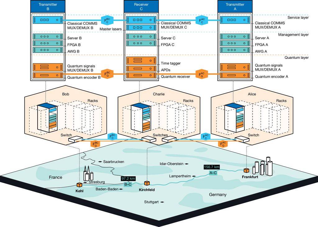 此次試驗在德國法蘭克福、凱爾和基希費爾德三個電信數據中心之間進行,成功連接了長達254公里的光纖網絡,創造了在現有商用條件下量子通信距離的新紀錄。這一成果不僅證明了相干量子通信技術的可行性和實用性,也為未來量子通信技術的廣泛應用奠定了堅實的基礎。
