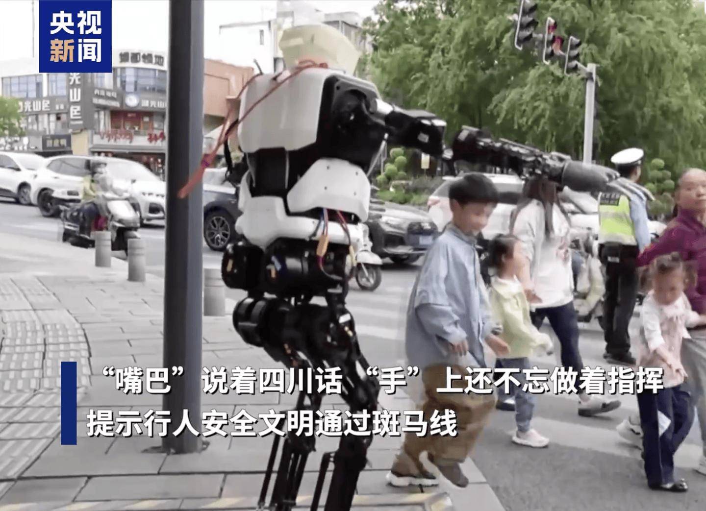 四川綿陽近日迎來了一項科技新舉措,城區部分路口出現了由樂聚機器人公司研發的“夸父人形機器人”,它們化身文明交通勸導員,在早晚高峰時段引導行人安全、文明地穿越斑馬線。