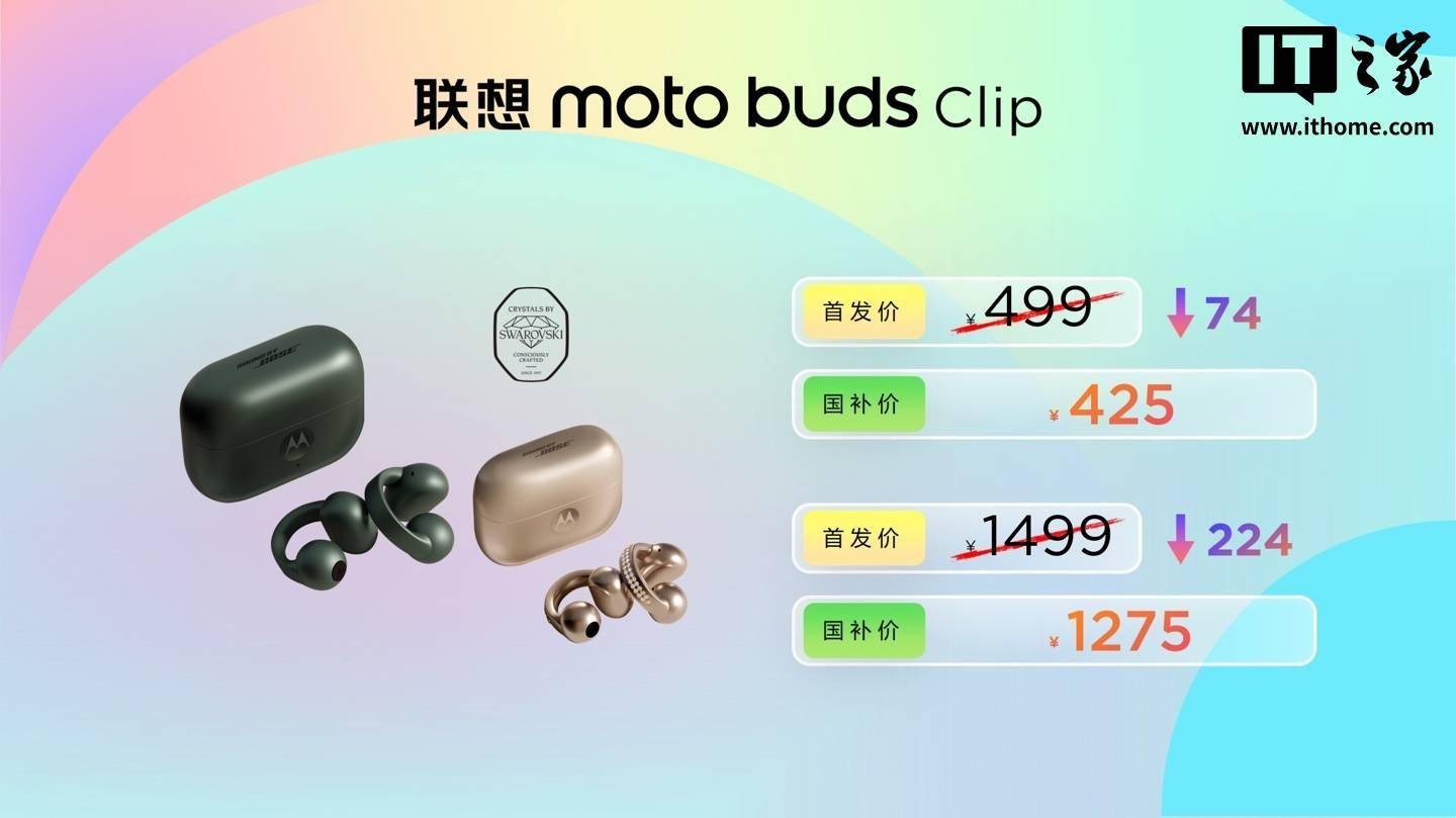 在價(jià)格方面,moto buds Clip的首發(fā)價(jià)為499元,經(jīng)過國家補(bǔ)貼后,用戶只需支付425元即可擁有。而晶鉆限量版的首發(fā)價(jià)則為1499元,補(bǔ)貼后價(jià)格為1275元。這樣的價(jià)格定位,無疑讓這款耳機(jī)在同類產(chǎn)品中具有了極高的性價(jià)比。