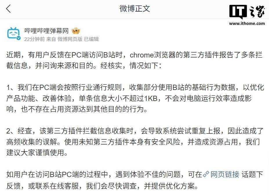 B站PC端數(shù)據(jù)收集遭攔截,官方:按規(guī)則收集,插件或致誤解