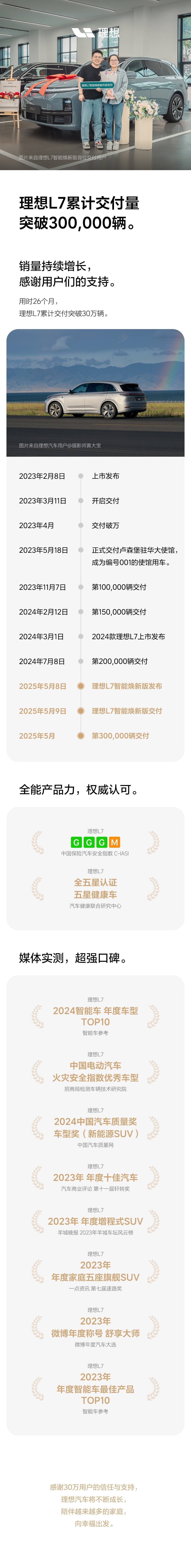 理想L7累計交付突破30萬輛,智能煥新版再掀市場熱潮!