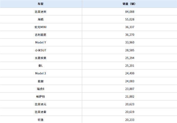 2025年4月車型銷量大比拼:小米SU7躋身第六,超越特斯拉Model 3!