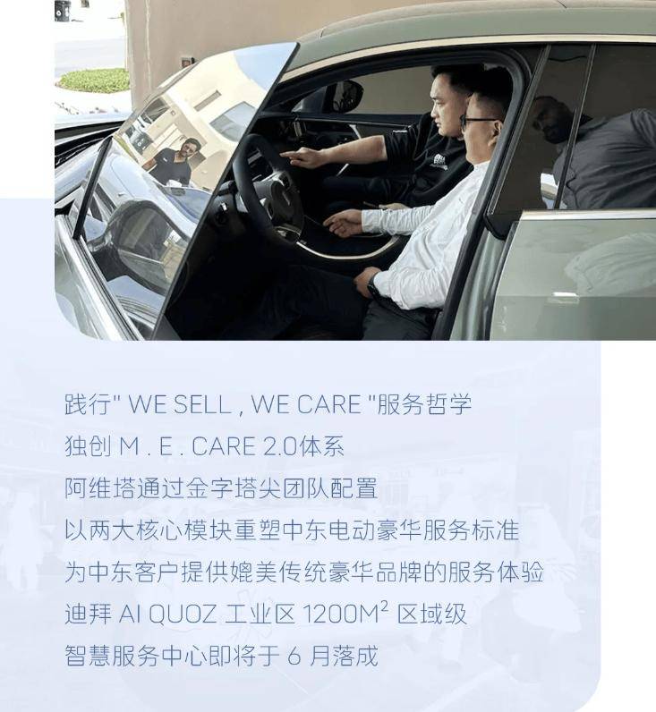 阿維塔官方透露,自今年1月起,該品牌在阿聯(lián)酋市場的大定訂單已經(jīng)累積達(dá)到了260臺,這進(jìn)一步證明了其產(chǎn)品在當(dāng)?shù)厥袌龅氖軞g迎程度。阿維塔還計劃在6月份于迪拜AI QUOZ工業(yè)區(qū)落成一個占地1200平方米的區(qū)域級智慧服務(wù)中心,這將為車主提供更加便捷和高效的服務(wù)。
