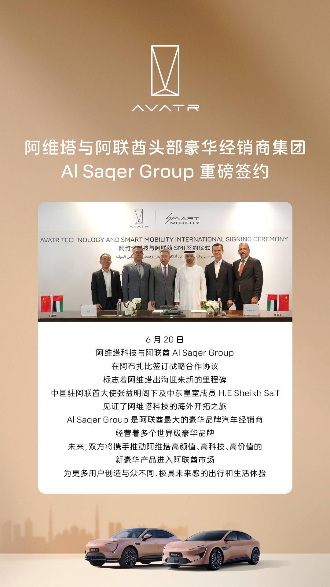 回顧阿維塔在中東市場的布局,早在去年6月,該品牌便宣布正式進(jìn)軍中東地區(qū),并與阿聯(lián)酋知名的豪華品牌汽車經(jīng)銷商Al Saqer Group簽署了戰(zhàn)略合作協(xié)議。這一合作不僅為阿維塔打開了中東市場的大門,更為其在該地區(qū)的發(fā)展奠定了堅實的基礎(chǔ)。