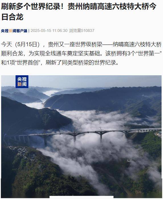 貴州六枝特大橋合龍,三項世界第一一項首創(chuàng)刷新橋梁紀錄!