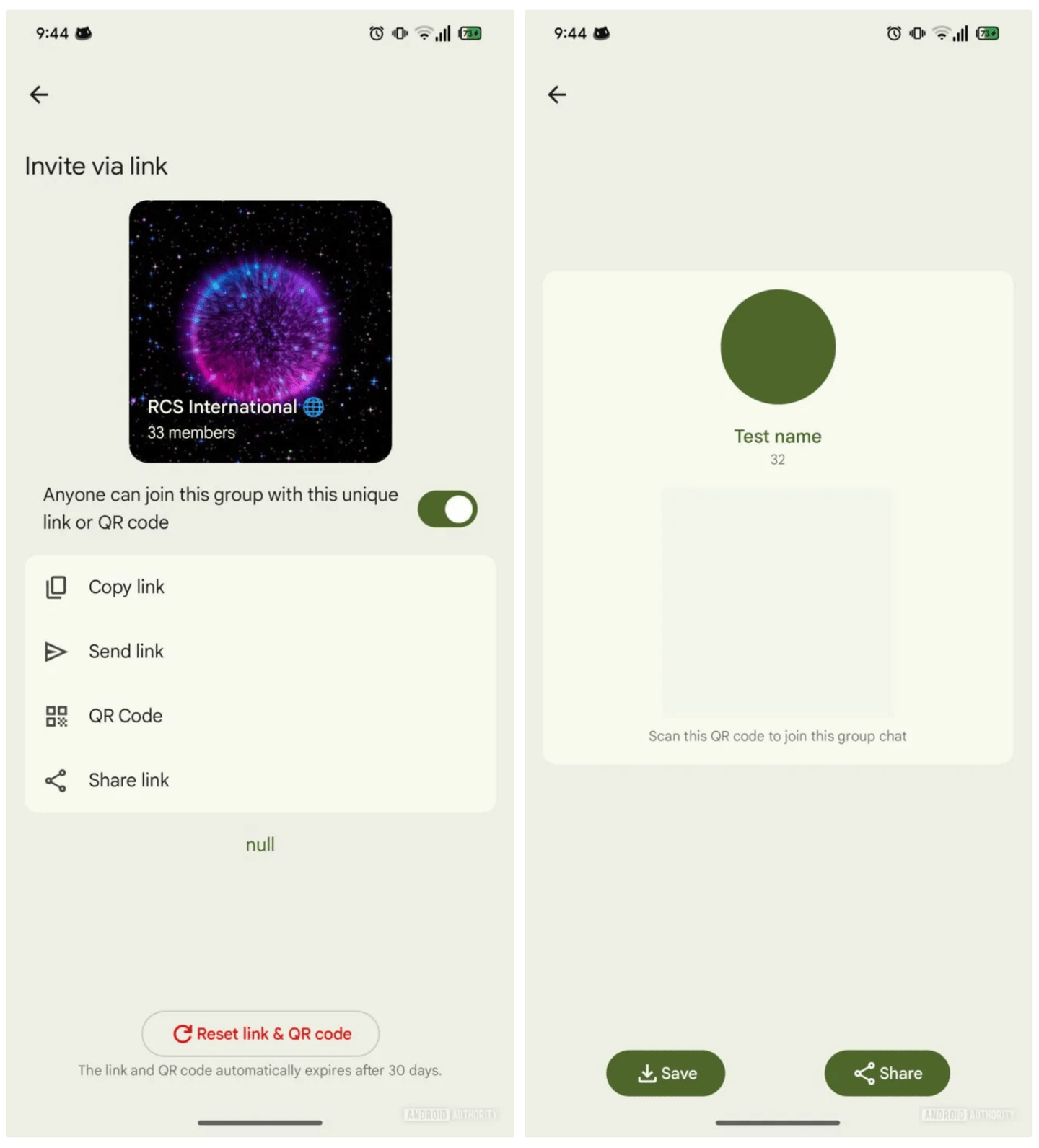 在QR碼分享頁面上,谷歌還貼心地設計了保存和分享按鈕,使得整個操作過程更加簡便快捷。測試版的應用還對群聊名稱的編輯方式進行了優化,采用了一個直觀的鉛筆圖標替代了原先的“群組名稱”選項,這一改動無疑將提升用戶的操作體驗。
