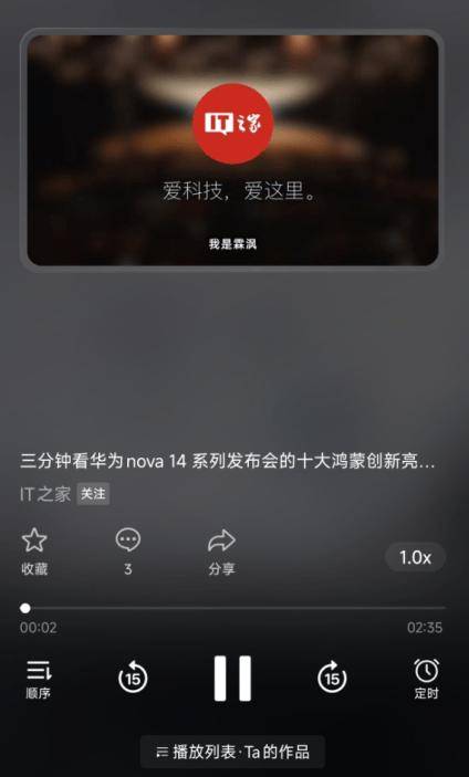 值得注意的是,當(dāng)用戶(hù)聽(tīng)完當(dāng)前視頻后,系統(tǒng)會(huì)自動(dòng)推薦該創(chuàng)作者的其他作品進(jìn)行連續(xù)播放。用戶(hù)還可以根據(jù)個(gè)人偏好,選擇順序播放或循環(huán)播放,確保每一次的聽(tīng)覺(jué)體驗(yàn)都充滿(mǎn)新鮮感。