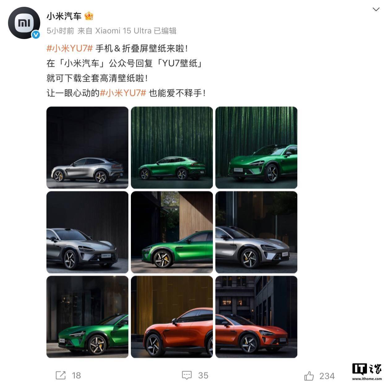 小米汽車近日在其官方微博上發布了一系列高清壁紙,這些壁紙以YU7車型為主題,專為手機、平板及折疊屏設備設計,為用戶提供了豐富的視覺享受。