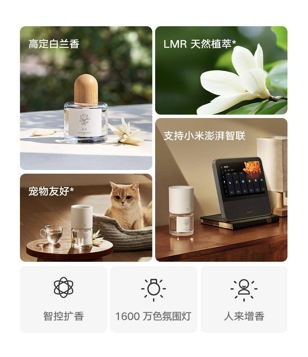 此次小米與國際知名的高品質香原料實驗室IFF-LMR合作,為用戶帶來了獨特且純凈的香氣體驗。特別是白蘭香型,小米特別強調了其甄選高品質原料,并在最佳花期進行手工采摘,通過層層萃取,確保了白蘭獨特香氣的完美保留。
