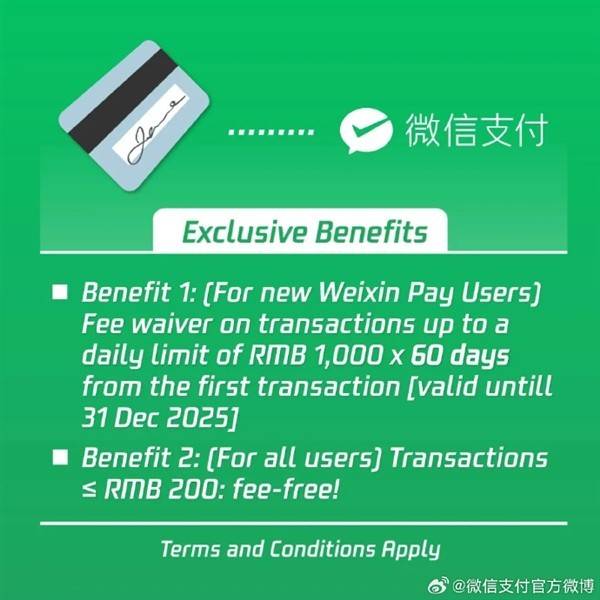 微信支付新福利!國際用戶專享,綁卡交易免手續(xù)費(fèi)啦!