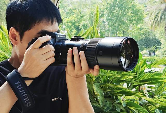 與傳統攝影題材相比,生態攝影,尤其是鳥類攝影,對器材的要求更為嚴苛。鳥類體型小、警覺性高,這要求相機必須搭配長焦鏡頭進行遠距離拍攝。為了捕捉這些靈動的瞬間,我們選擇了富士的GFX100 II中畫幅相機,搭配富士龍GF500mm F5.6 LM OIS WR鏡頭,并輔以增倍鏡,以滿足拍攝需求。