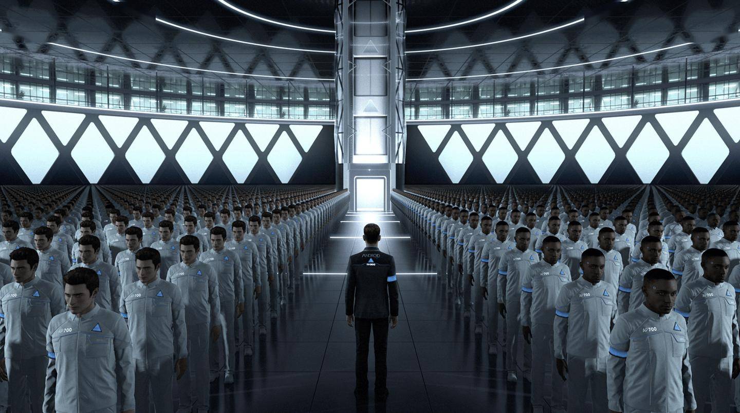 游戲背景設定在2038年的底特律,一個科技高度發達、人形仿生機器人普及的時代。這些機器人能夠像人類一樣交流、行動,但本質上仍然是服務于人類的工具。玩家將扮演三名不同的機器人角色,通過他們的視角見證一個動蕩不安的世界,體驗緊張刺激且錯綜復雜的劇情。