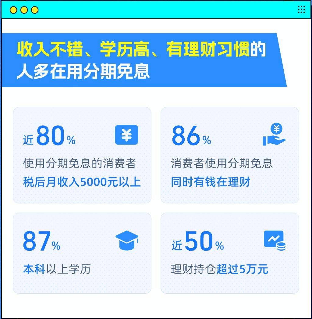 以10000元的消費為例,如果選擇12期分期免息付款,沒有被占用的資金可以用來投資,如放在余額寶中,按照年化1.5%計算,一年能有約80元的收益。這種“要買的東西用上了,沒有多花一分錢,還能賺錢”的消費方式,得到了越來越多消費者的青睞。