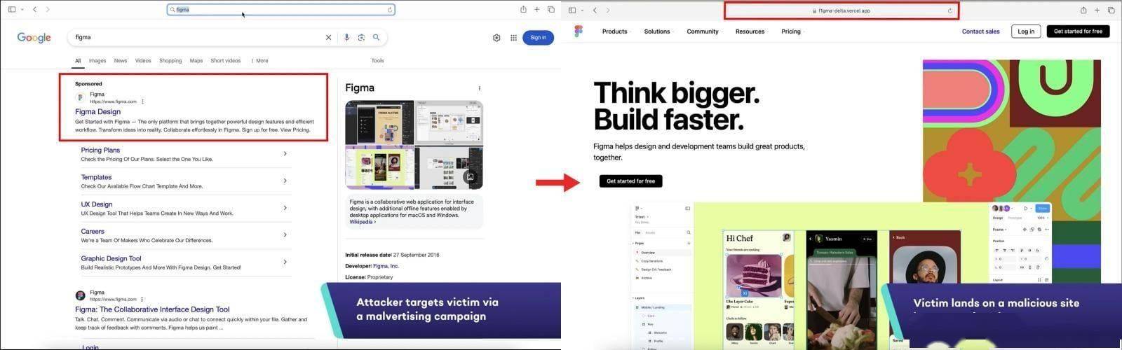 這種攻擊手段極具欺騙性,攻擊者常通過瀏覽器廣告、社交媒體帖子或評論等方式散布虛假鏈接。例如,偽裝成Figma的網站,便能輕松誘騙用戶點擊。一旦用戶忽略了地址欄中的可疑URL并點擊登錄,隱藏的BitM窗口隨即被激活,進入全屏模式,覆蓋仿冒網站,顯示用戶原本意圖訪問的合法頁面。