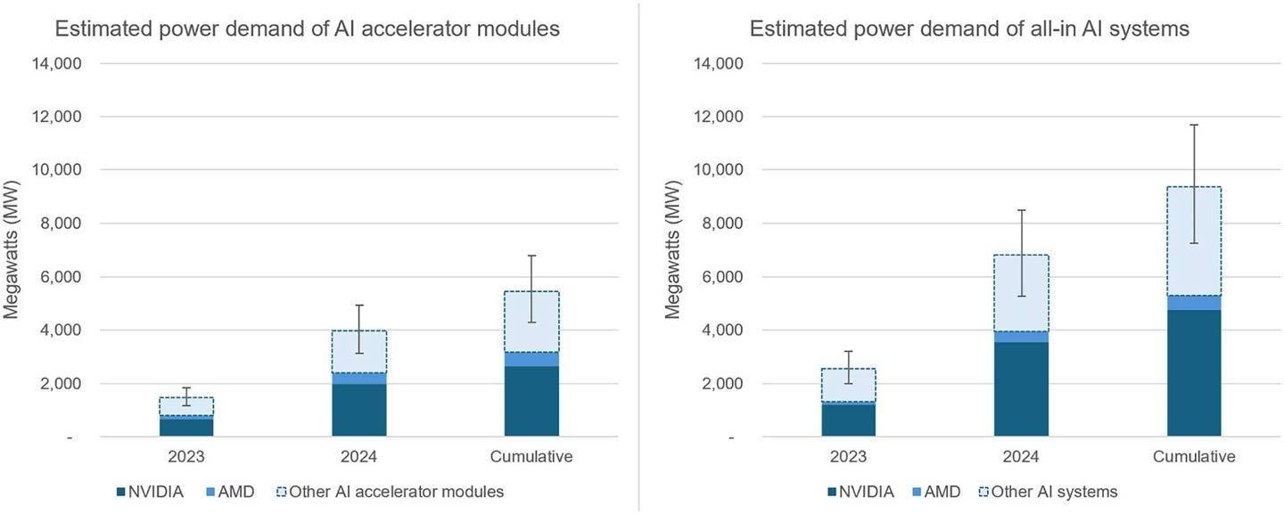 這項研究由阿姆斯特丹自由大學環境研究所的博士候選人Alex de Vries-Gao在《Joule》期刊上發表。他指出,AI當前已經占據了數據中心總用電量的五分之一,并且這一需求仍在以驚人的速度增長。根據他的預測,到2025年底,AI的電力需求可能會飆升至23吉瓦(GW),這幾乎相當于全球數據中心用電量的一半,也接近于英國全國的電力消耗。