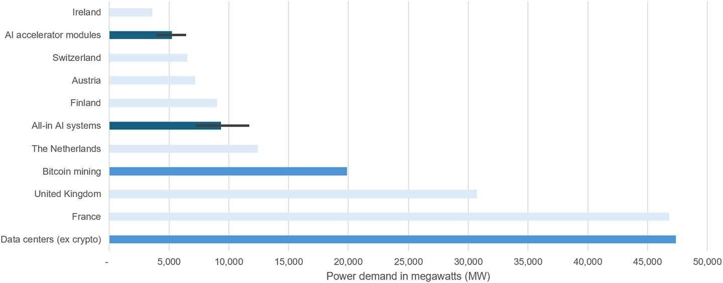 盡管AI的能耗數據難以精確獲取,但de Vries-Gao通過一種被稱為“三角測量”的方法,結合硬件生產數據、分析師預測以及企業財報,對AI設備的用電量進行了估算。據他估算,去年AI可能已經消耗了相當于荷蘭全國電力總量的能源。