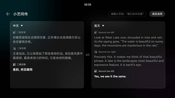 小藝的領(lǐng)先語(yǔ)音技能尤為引人注目,它如同一位“移動(dòng)翻譯官”,能夠?qū)崟r(shí)翻譯多種語(yǔ)言,打破跨國(guó)溝通的壁壘。無(wú)論是商務(wù)接待中的技術(shù)參數(shù)討論,還是靈感碰撞的思維風(fēng)暴,小藝都能確保雙方精準(zhǔn)理解,讓溝通無(wú)界限。這一功能不僅解決了專業(yè)翻譯的需求,還保護(hù)了用戶的隱私,讓智能座艙成為了一個(gè)移動(dòng)的跨文化溝通平臺(tái)。