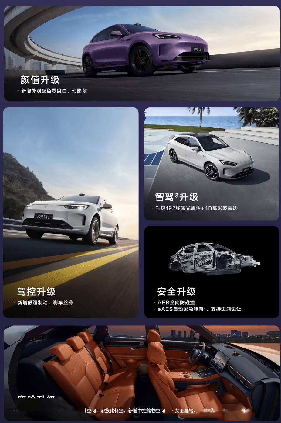 在配置上,新M5 Ultra全系標配192線激光雷達、4D毫米波雷達以及舒適制動系統,安全性能上支持AEB全向防碰撞和eAES自動緊急轉向等功能,為用戶提供了全方位的安全保障。新車還搭載了全鋁合金底盤,百公里加速僅需4.3秒,剎車平順性提升了81%,進一步提升了駕駛體驗。