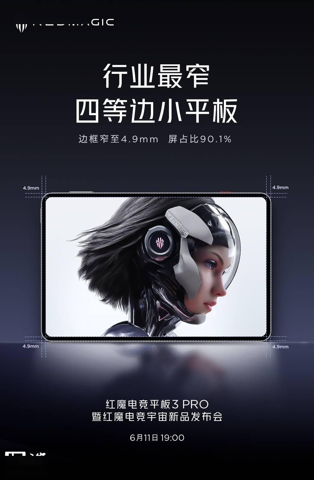 紅魔電競平板3 Pro來襲:9.06英寸大屏搭配4.9mm超窄邊框,游戲體驗再升級!