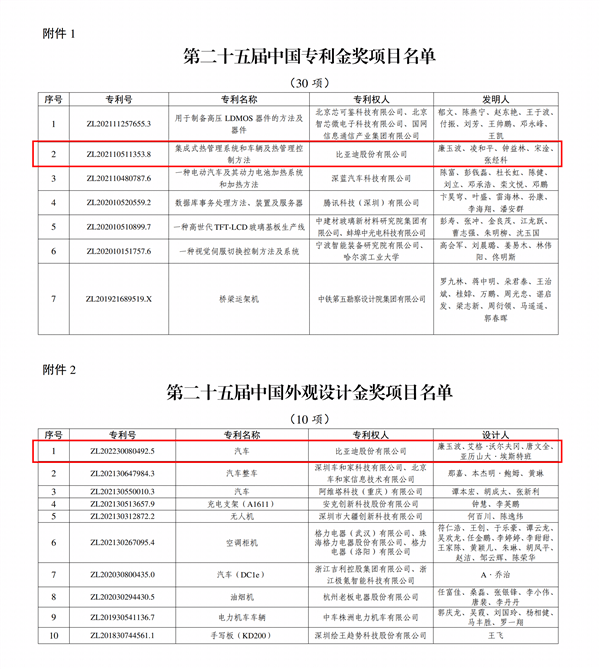 近日,比亞迪在科技創新領域再度傳來捷報,國家知識產權局正式揭曉第二十五屆中國專利獎的獲獎名單,比亞迪憑借卓越的技術實力,成功斬獲兩項頂級專利大獎,進一步彰顯了其在技術研發領域的深厚底蘊。
