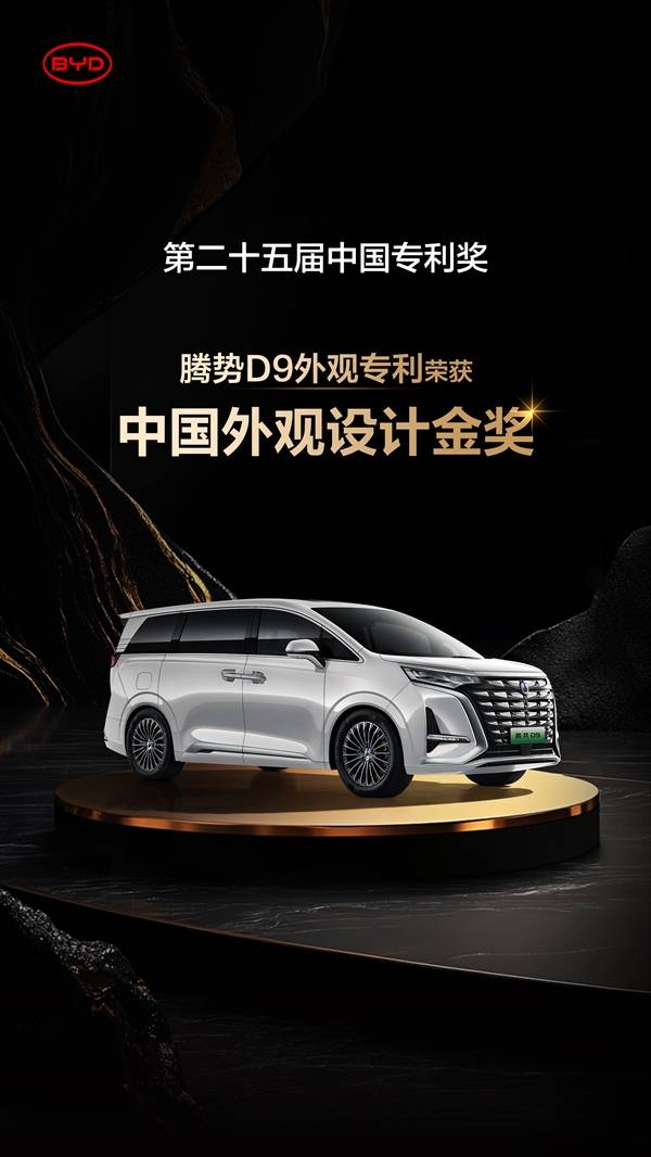 比亞迪旗下的騰勢D9外觀專利也表現不俗,榮獲了中國外觀設計金獎。該專利展現了“π-Motion”的獨特設計理念,為騰勢D9賦予了極高的顏值和辨識度。憑借這一設計,騰勢D9在MPV市場中脫穎而出,連續多年蟬聯銷量冠軍,累計銷量已突破30萬臺大關。