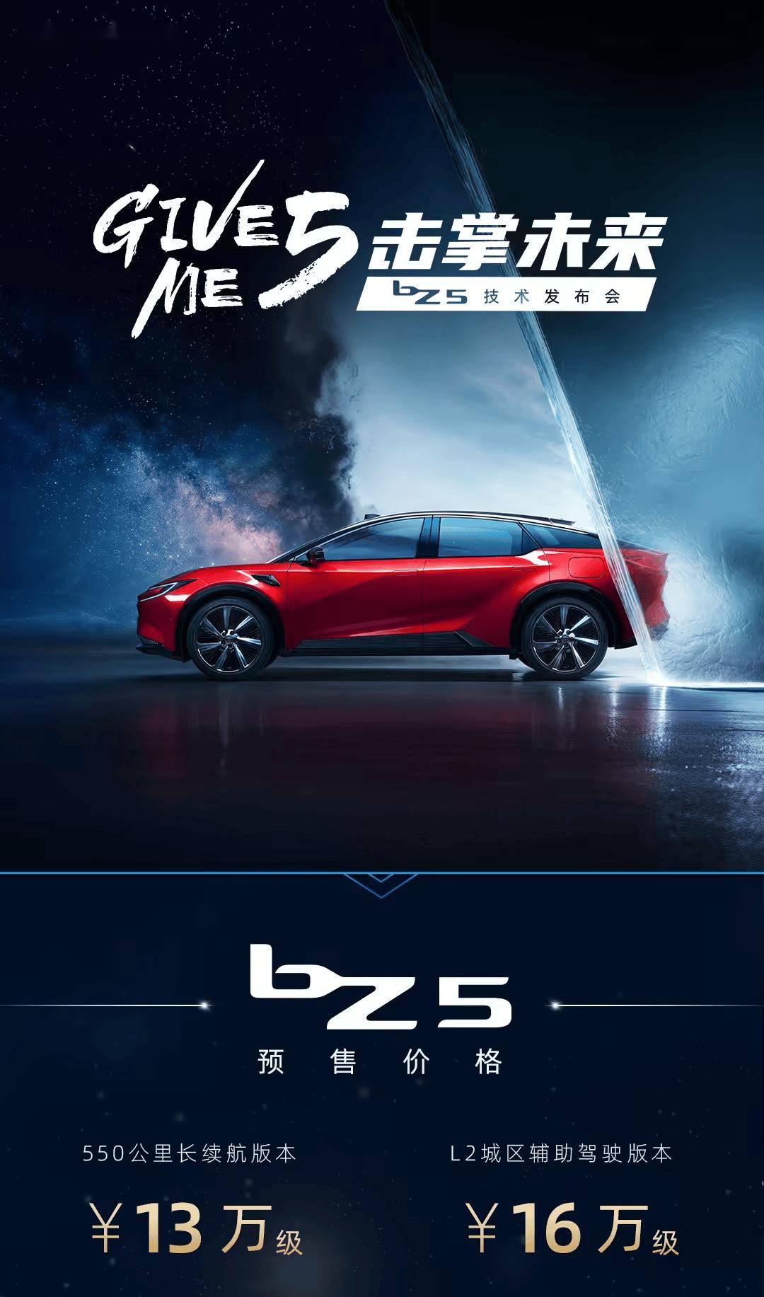 一汽豐田bZ5來襲!6月10日上市,預售13萬-16萬,配置亮點多多