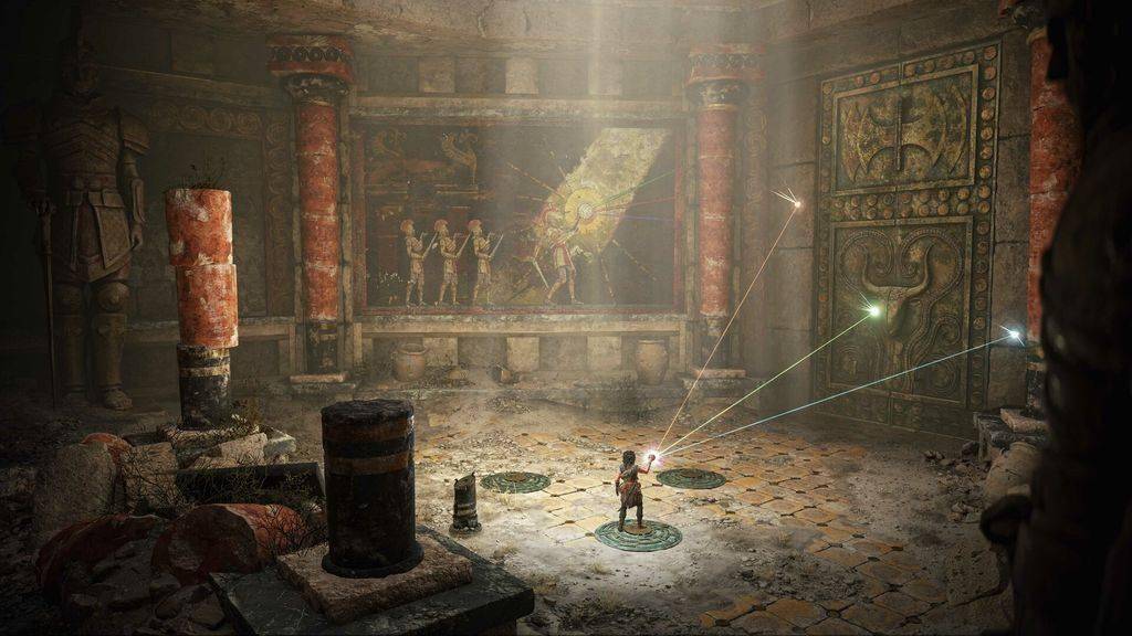 除了緊張刺激的戰斗外,游戲還融入了豐富的解謎元素。玩家需要操控米諾斯圓球,通過解決復雜的謎題來揭示島嶼的秘密。這些謎題不僅考驗玩家的邏輯思維和觀察力,還巧妙地融入了島嶼的古老傳說和神話色彩。