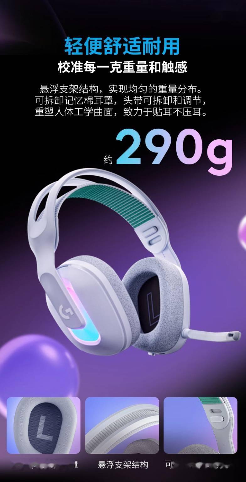 G522耳機(jī)專為長時間佩戴而設(shè)計,整體重量控制在290克。在舒適度方面,這款耳機(jī)實現(xiàn)了顯著改進(jìn),耳罩更寬,內(nèi)部增加了一層記憶泡沫,并包裹在柔軟且耐用的新材料中,為用戶帶來更佳的佩戴體驗。同時,可翻轉(zhuǎn)的懸架帶設(shè)計使得重量分布更加均勻,新增的脊部結(jié)構(gòu)不僅提升了透氣性,還增強(qiáng)了耐用性。