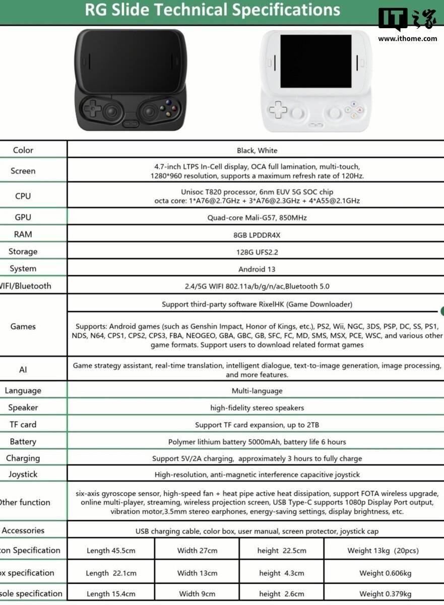 為了滿足不同用戶的審美需求,RG Slide掌機(jī)提供了黑白兩種配色方案。其配備了一塊4.7英寸的觸控顯示屏,分辨率達(dá)到了1280x960,并支持最高120Hz的刷新率,為用戶帶來流暢的視覺體驗(yàn)。