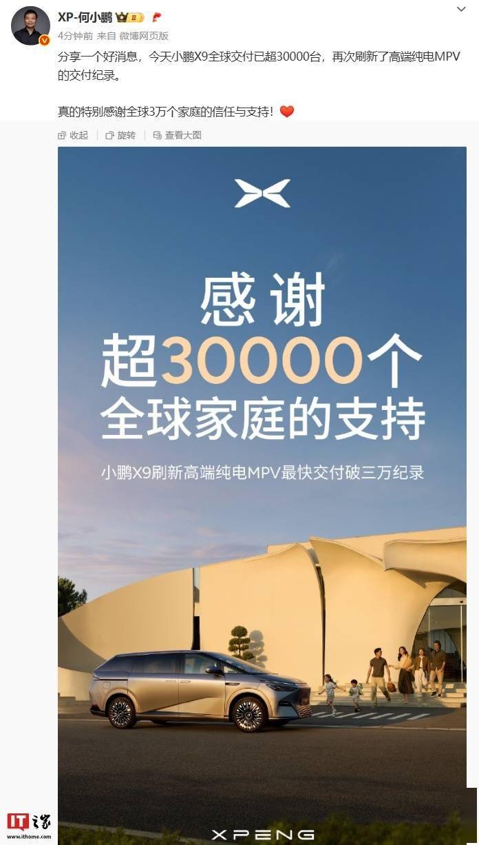 小鵬X9全球交付破3萬,高端純電MPV市場再添佳績!