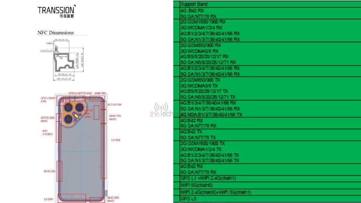 存儲配置方面,Tecno Pova 7 Ultra提供了12GB內存+256GB存儲的高配選項,滿足了用戶對大容量存儲空間的需求。FCC數據庫還展示了該機的外觀示意圖和內部天線布局,揭示了其精致的設計和內部結構。