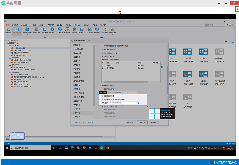 以域智盾軟件為例,該系統提供了多項核心功能,助力企業實現精細化管理。屏幕監控功能允許管理者遠程實時查看員工電腦屏幕,無論是實時畫面、錄像回放還是屏幕快照,均可輕松獲取,有效監督員工工作效率同時保障信息安全。上網行為監控功能全面覆蓋員工網絡活動,從瀏覽網頁、搜索內容到聊天記錄、文件下載,無一遺漏,確保員工專注工作,及時發現并阻斷潛在安全威脅。