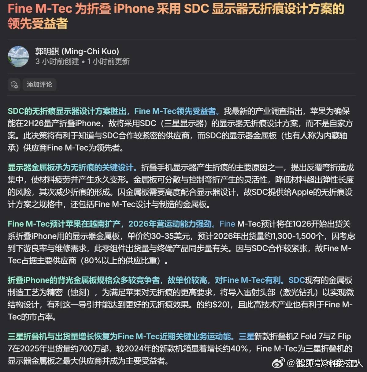 蘋果首款折疊屏iPhone采用三星方案,創新不足引發組裝廠爭議